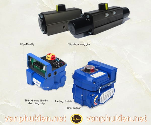 - Phần động cơ điều khiển: Đây là bộ phận chính hay còn gọi là dạng xilanh quay, khi cấp khí nén vào động cơ khí nén với áp lực dao động 3bar -8 bar quá trình đóng van hoặc mở van sẽ được thực hiện và điều tiết nhanh chóng.
